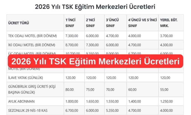 2026 Yılı TSK Eğitim Merkezleri Ücretleri
